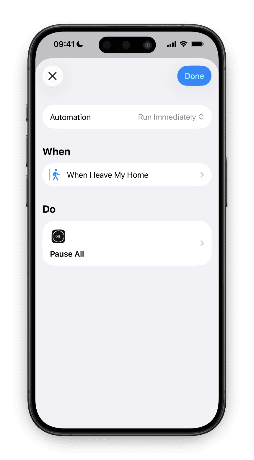 The problem: You leave the house and realize hours later that music has been playing to an empty home, wasting energy and potentially annoying neighbors. The solution is beautifully simple. Create a location-based automation that triggers when you leave home and tells Lyd to pause all your Sonos speakers. Your iPhone detects when you've left, and the music stops automatically – no more rushing back to check if you remembered to turn everything off.