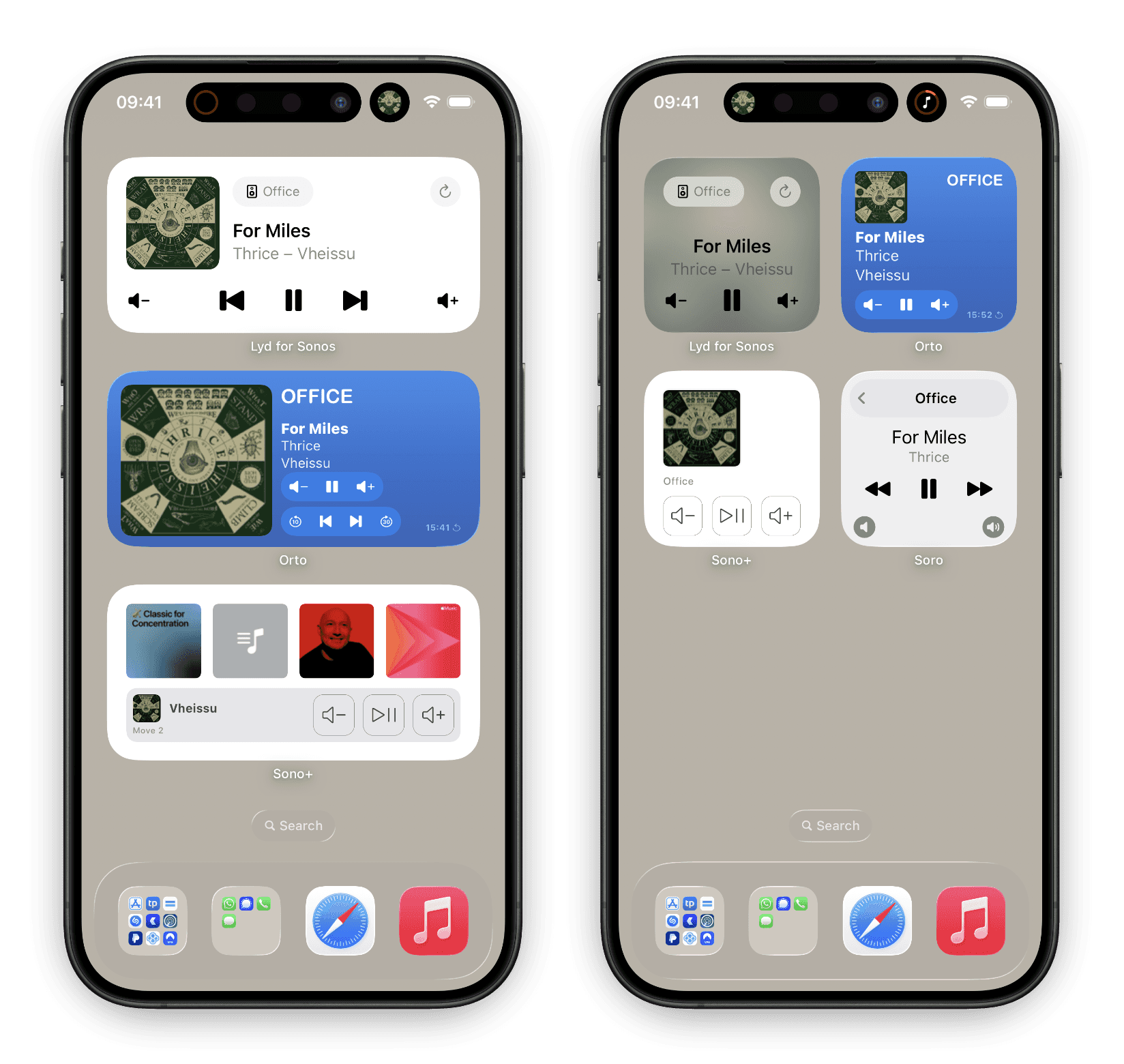 Building on that Watch foundation, Lyd delivers all the iOS integrations that make living with Sonos effortless: Lock Screen playback controls for instant access without unlocking your phone, Home Screen Widgets in multiple sizes for at-a-glance control, and Live Activities that persist reliably in Dynamic Island. This means controlling music becomes as simple as glancing at your screen and tapping – no app hunting, no unlocking, no waiting for apps to load.