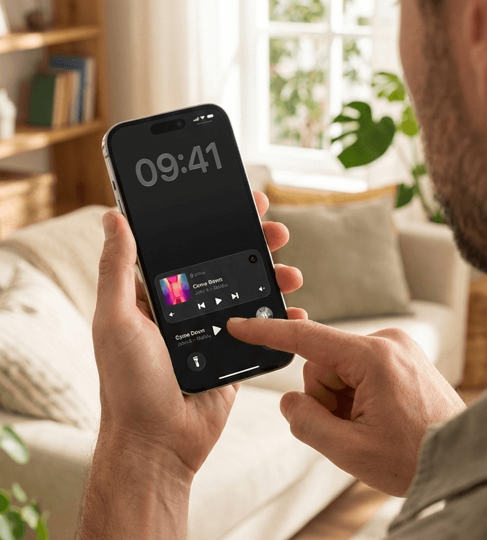 This matters when your phone rings and music is playing – you need to silence it instantly. It matters when you're cooking and need to skip a song – tap the Live Activity on the lock screen with wet hands, no unlocking required. It matters when you're working and want to see what's playing – just glance at the lock screen Widget.